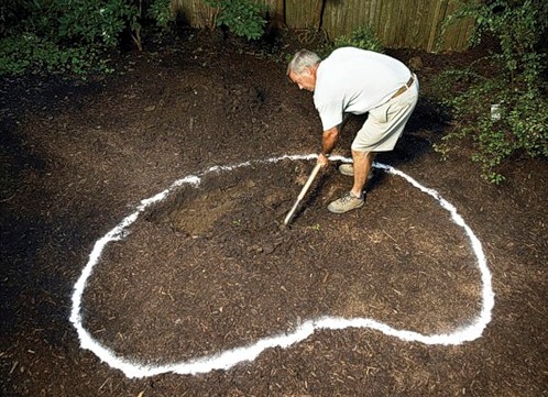 1. Thiết kế một ngọn đồi núi nên bắt đầu bằng việc lựa chọn một địa điểm trên trang web và vẽ đường viền của ngọn đồi núi trong tương lai. Đối với những mục đích này, bạn sẽ cần một thước dây để đo và cọc. Cần phải đo diện tích của ngọn đồi bằng thước dây và đánh dấu chu vi của nó bằng các vòng (điều này cũng có thể được thực hiện bằng vụn phấn, nếu thuận tiện hơn).