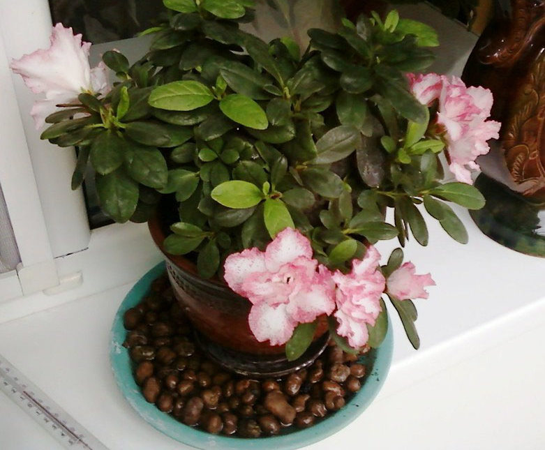 Một cây hoa cần được chăm sóc: nước mềm, không khí ẩm, ánh sáng khuếch tán sáng và nhiệt độ tối ưu. Phân bón chỉ cần thiết cho đến giai đoạn mở nụ. Ngoài ra, trong thời kỳ vừa chớm nở, bạn cần loại bỏ tất cả các chồi non để hoa đỗ quyên không lãng phí sức mạnh cho chúng. Không cần phải ngại di chuyển chậu trong quá trình ra hoa để thậm chí chiếu sáng, hoa sẽ hoàn toàn chịu đựng được sự thay đổi vị trí.
