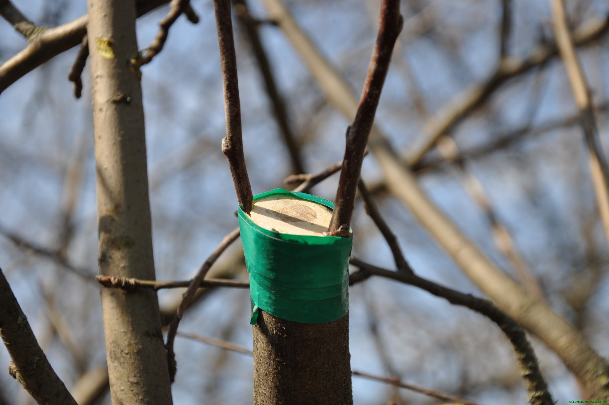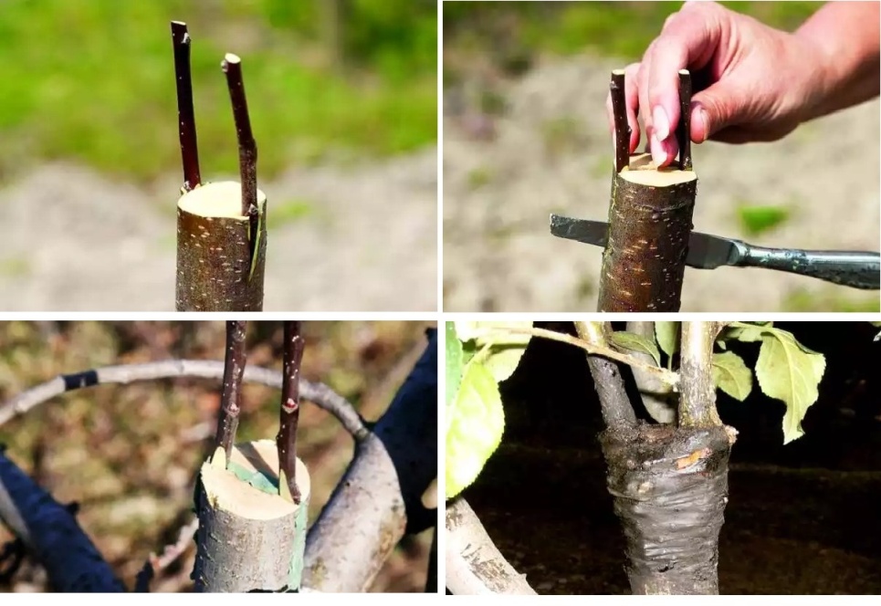 Do số lượng lớn các giống cây nguyên sinh, đôi khi có những khó khăn trong việc tìm kiếm cành ghép và gốc ghép với các thông số tương tự. Thường thì đường kính của chúng là khác nhau đáng chú ý. Những người làm vườn có kinh nghiệm sử dụng phương pháp này để trồng cây táo đa chủng, vì nhờ sự tăng trưởng này, vỏ cây tăng lên và cây trở nên mạnh mẽ hơn rõ rệt. Công nghệ chia tách trên nền tảng liên quan đến sự kết hợp giữa cây gai dầu và cành giâm ở góc phải. Sự ràng buộc của cây táo bằng phương pháp này được thực hiện như sau: