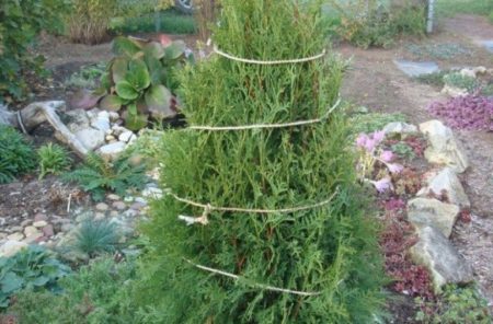 Trong các cửa hàng nơi có nhiều lựa chọn dụng cụ làm vườn được trình bày, đôi khi có những vỏ bọc đặc biệt cho cây trồng được bán. Có được chúng, chúng thuận tiện để sử dụng và sẽ kéo dài hơn một chục năm. Vỏ chỉ cần được đưa vào và trải trên thuja, sau đó cây sẽ đứng tuyệt vời trong suốt mùa đông, cho đến khi bắt đầu mùa xuân. Vào mùa xuân, tháo vỏ, rửa và lau khô, bạn sẽ không cần đến mùa thu.