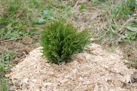 Độ dày của lớp màng phủ tối thiểu phải là 5 cm, nhưng không quá 10 cm. Lớp phủ được đặt gần vòng tròn thân cây, và cây vân sam được đặt trên đỉnh của nó. Nó sẽ bảo vệ hệ thống rễ khỏi loài gặm nhấm và nghiền nát lớp phủ.
