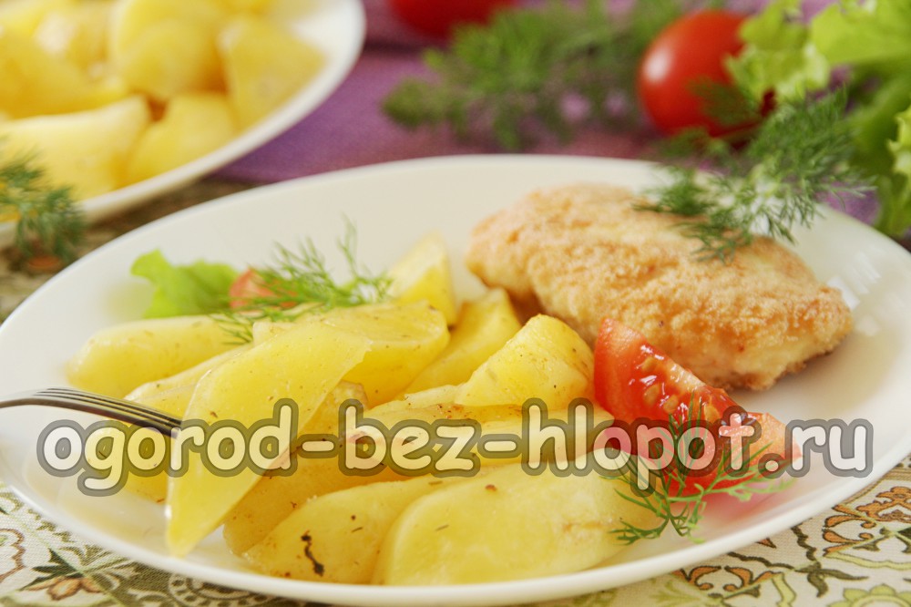 Đây là một công thức tuyệt vời - trong vài phút bạn có một món ăn thịnh soạn và ngon miệng trên bàn. Có lẽ phương pháp nấu khoai tây ngon này là nhanh nhất - nhanh hơn nhiều so với trong lò nướng hoặc trên bếp. Khoai tây mềm, ngon ngọt và rất vừa miệng!Thành phần
