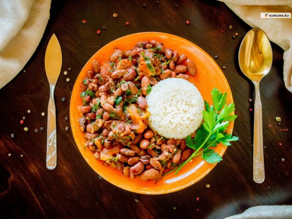 Đậu đỏ hình thành sự kết hợp hương vị thành công với tất cả các loại rau và thảo mộc. Đặc biệt thường được kết hợp với cà chua, ngò và hành tây. Là một món ăn phụ, đậu thích hợp cho cá và thịt. Ở vùng Kavkaz, lobio được làm từ đậu, cũng bao gồm quả óc chó, gia vị và tỏi.