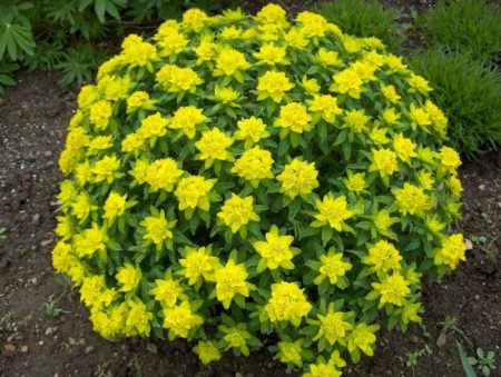Euphorbia không chỉ là một loại cỏ dại. Đối với bất động sản chọn euphorbia multiflorum. Khi cắt, thân cây tiết ra nước ép, có thể gây bỏng. Nhân giống bằng hạt, nở hoa với lá vàng trang trí.