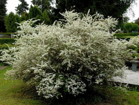 Spirea hoa trắng là một loại cây bụi đẹp, phát triển nhanh, nở hoa vào tháng 6, có tán lá mở, chuyển sang màu vàng vào mùa thu. Không có yêu cầu chăm sóc. Nó mất gốc dễ dàng, chịu được một mái tóc, sau đó nó phát triển tốt.