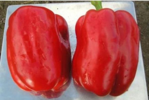 Sự đa dạng này ảnh hưởng đến kích thước của quả. Người ta có thể đạt chiều dài 25 cm. Trọng lượng của hạt tiêu là trung bình 300 gram. Người làm vườn, có thể tạo điều kiện lý tưởng để chăm sóc, có thể thu thập những quả lớn với độ dày thành từ 0,5 đến 0,8 mm. Hạt tiêu được đặc trưng bởi ribbing hơi phát âm. Nó là đáng chú ý hơn trong ớt hình thang.