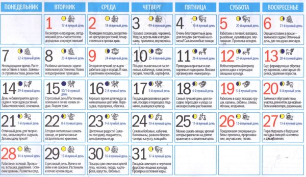 Việc cấy ghép cây có thể được thực hiện theo lịch âm trong gần như cả tháng; - theo lịch âm, nhổ cỏ và tỉa thưa ngay khi những chồi đầu tiên xuất hiện.