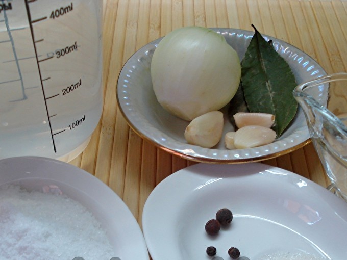 - giấm - 2 muỗng canh. muỗng canh + 0,5 muỗng canh. Thìa rast. dầu.