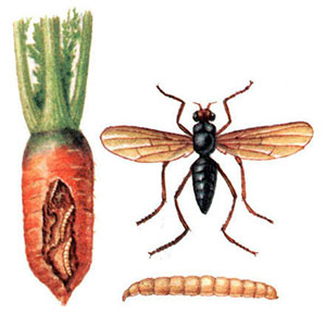Một con ruồi cà rốt và ấu trùng của nó có thể đâm vào cây ngay cả sau khi thu hoạch tại vị trí lưu trữ của nó. Ấu trùng xâm nhập từ củ cà rốt này vào lõi của cây khác và tiếp tục phá hủy mùa màng.