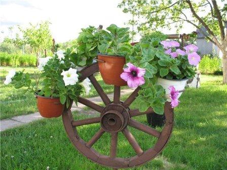 Vì vậy, bạn đã phác thảo một kế hoạch sơ bộ, bây giờ bạn cần quyết định các loại hoa và vật liệu khác để tạo ra một phong cách duy nhất. Ví dụ, ngôi nhà của bạn được làm theo phong cách mộc mạc - những chiếc ghế gỗ tinh xảo, những lối đi từ những chiếc cưa xẻ, hàng rào giường hoa với chốt gỗ là hoàn hảo cho nó. Ở đây bạn có thể gắn một chiếc xe đẩy cũ, xe cút kít, ghế, vân vân, biến chúng thành những chiếc giường hoa và băng ghế, có thể được trang trí với màu sắc tươi sáng đầy màu sắc.