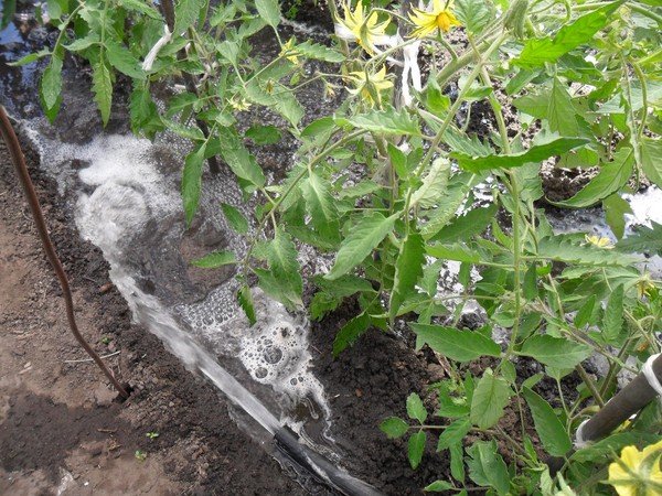 - Khi tưới nước, các yêu cầu khác nhau của cà chua được tính đến. Những bụi cà chua cao đòi hỏi nhiều nước hơn so với các đối tác thấp của chúng. Các giống chín sớm nên được tưới thường xuyên hơn, chúng phát triển nhanh hơn và điều này đòi hỏi phải có nước.