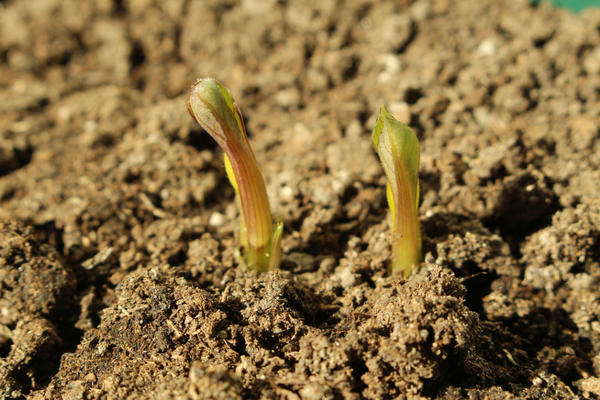 Nguyên liệu hạt giống khá lớn, đặt nó xuống đất không khó. Hạt trên cùng phải được rắc đất. Hãy chắc chắn để tưới. Tốt nhất là sử dụng súng phun. Che phủ cây trồng bằng kính từ trên cao.