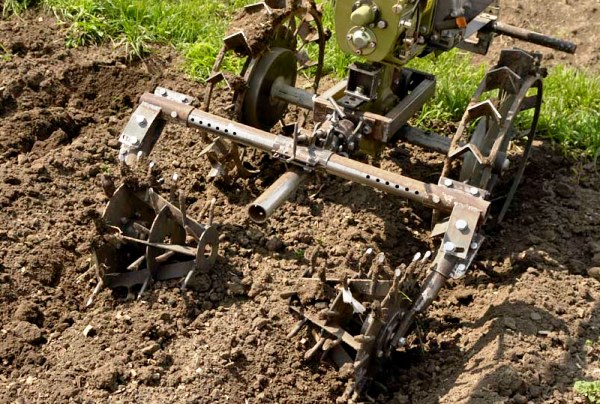 - Máy kéo đi bộ phía sau với máy cắt quay. Tôi sử dụng dao phay để làm cỏ khoai tây, cũng như trộn phân bón tự nhiên với mặt đất. Đây là một vòi phun đặc biệt ở dạng các tấm hình ngôi sao sắc nét. Chúng được đặt trên trục làm việc.