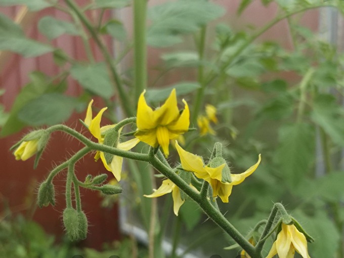 Trong quá trình ra hoa, cà chua cần thụ phấn, đặc biệt đối với các giống được trồng trong nhà kính. Để thiết lập trái cây tốt hơn, cần phải gõ hàng ngày trên thân cây để phấn hoa rơi vào các cụm hoa lân cận. Bạn cũng có thể phun cà chua với chế phẩm Buồng trứng buồng trứng, sẽ làm tăng đáng kể số lượng quả.
