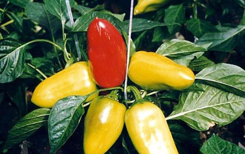 - Giống "vàng Hungary" đại diện cho hạt tiêu nóng với các chỉ số chất lượng tuyệt vời. Những cây còi cọc sẽ cho phép bạn trồng nó trên ban công. Hạt tiêu vàng ở độ chín kỹ thuật đã đạt đến khối lượng 60 gram với độ dày thành 3-4 mm. Quả chín đỏ. Trên một bụi cây trên đầu, có tới 30 quả ớt được hình thành.