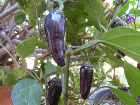- "Jalapeno tím" - hạt tiêu nóng vừa với trọng lượng 35-40 gram. Quả nhỏ màu tím đậm. Các bụi cây phát triển thấp, hệ thống rễ sẽ cảm thấy tuyệt vời trong một chậu. Trong thời kỳ đậu quả, 25-35 quả được buộc vào cây.