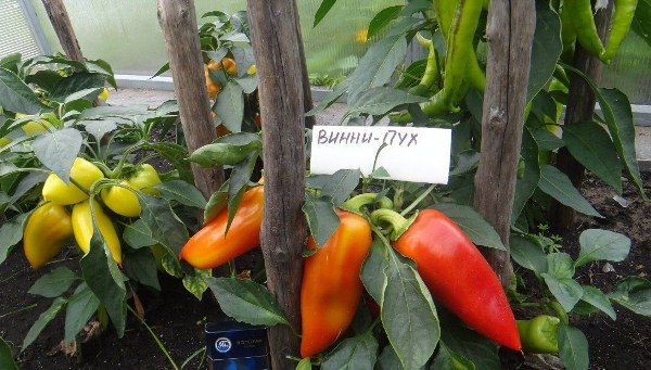 - "Winnie the Pooh" - hạt tiêu với trái cây nhỏ, 45-60 gram, nhưng với một cùi rất mềm và ngon ngọt. Độ dày thành trong trường hợp này đạt 5-8 mm. Sự đa dạng sẽ hài lòng với thời gian chín của nó, 107-115 ngày. Cây không phát triển quá 30 cm, vì vậy nó sẽ trông giống như một bông hoa trong nhà bình thường.