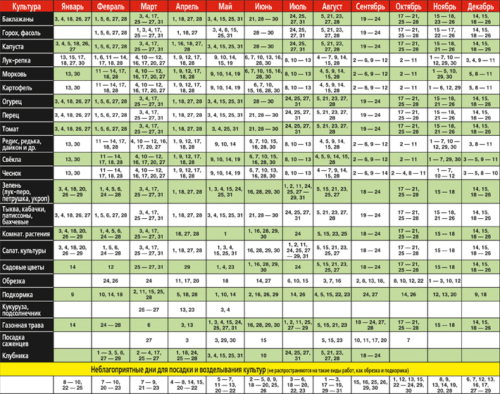 Nếu bạn làm theo các khuyến nghị của lịch này, bạn có thể trồng một loại cây trồng phong phú và ngon miệng, tránh nhiều vấn đề trên đường đi. Tất cả không chỉ phụ thuộc vào giai đoạn Mặt trăng đang ở (tăng hay giảm, mặt trăng mới hay trăng tròn), mà trong đó có 12 chòm sao hoàng đạo, vệ tinh đang ở một thời điểm cụ thể.
