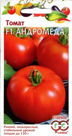 Andromeda có một hương vị dễ chịu. Gieo cây thường được thực hiện 56 ngày trước khi trồng trong đất. Nhà máy được đặc trưng bởi sự tăng trưởng nhanh chóng, sự phong phú của cuống. Rất nhanh chóng, trái cây bắt đầu phát triển, được lấp đầy với một màu đỏ đẹp. Bản thân chúng có hình dạng tròn cổ điển, hơi dẹt, da mỏng và hương vị cà chua dễ chịu.