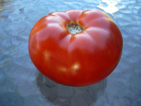 Cà chua của giống này phải được trồng kịp thời. Về chiều cao, chúng đạt tới một mét. Các bụi cây đa dạng có thể được hình thành với tối đa ba thân cây để có được một vụ mùa chất lượng. Cây có tán lá rậm rạp, quả có màu đỏ thẫm. Cà chua có hình dạng tròn phẳng. Chúng khá lớn. Kích thước của một quả là trung bình 2500 gram. Tùy thuộc vào sự chăm sóc của cây và các điều kiện được tạo ra, trọng lượng của một quả cà chua có thể đạt tới 300 gram.