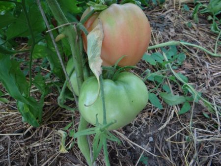 Các bụi cây bật ra mạnh mẽ và cao, hầu như không thể buộc lại. Cà chua to, có vị ngọt. Thu hoạch lớp.