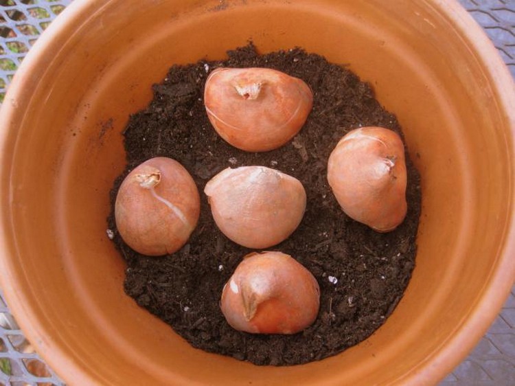Bóng đèn được trồng trong đất sau khi làm mát, với một mặt phẳng vào thành chậu, các lá thấp hơn sau đó sẽ không can thiệp vào các cây lân cận. Nó được đào sâu vào đất để sau khi tưới, vương miện của bóng đèn bị lộ ra, hơi nằm dưới mép trên của chậu. Khoảng cách giữa các hoa tulip là 20 mm. Trái đất được tưới nước. Hộp được chuyển đến một nơi tối, mát mẻ. Các thùng chứa không được phủ một bộ phim, để tránh các bệnh nấm. Chế độ tối ưu khi hạ cánh không quá 10 độ nhiệt.