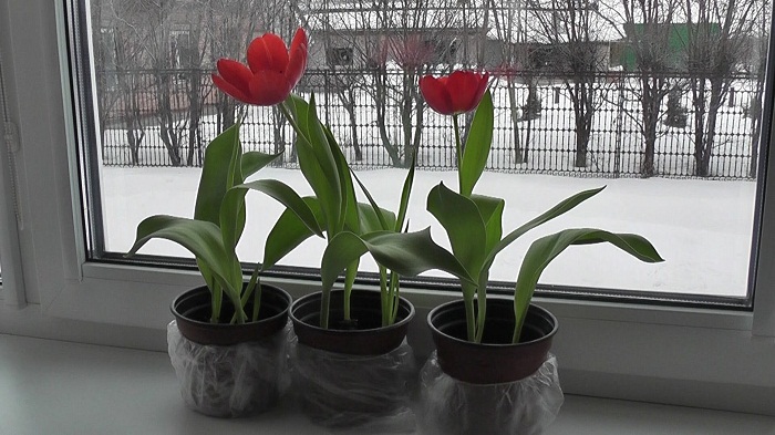 Nếu mọi thứ được thực hiện chính xác, những bông hoa đầu tiên sẽ xuất hiện vào cuối tháng Hai. Chọn hoa tulip cắt có chọn lọc: chọn một thân cây cao và đều, một nụ lớn với màu sắc bão hòa, cây nên không bị hư hại. Sau khi cắt, để lại ít nhất một lá, điều này sẽ giúp bóng đèn tiếp tục chín.