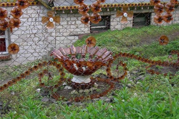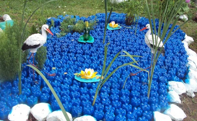 Ví dụ, đáy chai có thể được sử dụng làm vật chứa cho một luống hoa hoặc cho cây con. Tàu từ năm lít trở lên có thể được sử dụng như chậu rửa. Vòi phun có thể thu được bằng cách đặt một vòi trên chai. Sau khi tạo một lỗ trên nắp, bạn có thể có được một bình tưới tuyệt vời cho khu vườn với một tay cầm thuận tiện. Từ một chai nhựa, bạn có thể tạo ra một bộ nạp chim thực tế và tiện lợi cho mùa đông.
