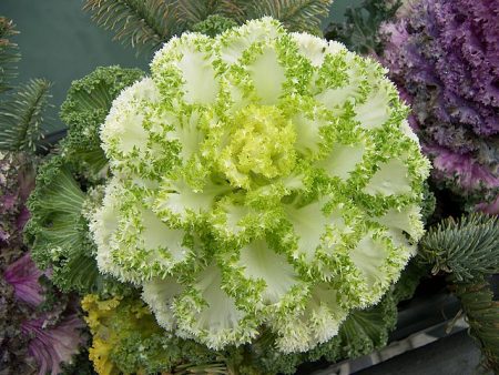 Bắp cải trang trí là một đại diện phi thường của gia đình Cruciferous. Đề cập đến một chế độ xem bảng riêng biệt. Trong khi mùa hè nở hoa vào mùa thu, trang trí chính của khu vườn là bắp cải trang trí, những chiếc lá nhỏ có màu sắc bão hòa của màu tím, kem và đỏ. Sau đợt sương giá đầu tiên, những chiếc lá trở nên ăn được: chúng rất ngon và khỏe mạnh. Chúng chứa tới 20% chất rắn. Bắp cải cũng giàu protein, chất xơ, khoáng chất và axit amin.