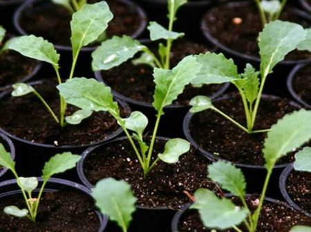 Để hạt giống nảy mầm càng sớm càng tốt, một nhà kính ngẫu hứng được bố trí trên các đồn điền. Nó sẽ bảo vệ chống lại thời tiết lạnh đột ngột. Vào những ngày ấm áp, bộ phim được gỡ bỏ. Điều quan trọng là trong quá trình sinh trưởng của cây con, chúng nhận được lượng ánh sáng, nhiệt và độ ẩm tối ưu. Bắp cải sẽ không mọc ở vùng đất lạnh. Ngay giữa tháng Năm, những bụi cây đã trưởng thành có thể được cấy vào một luống hoa. Khi bắt đầu sự phát triển tích cực của lá, bắp cải được cho ăn bằng dung dịch mullein. Sau đó, nồng độ nitơ được giảm trong bổ sung khoáng chất ưu tiên.