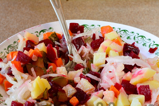 Mọi người đều biết rằng vinaigrette được làm từ khoai tây, củ cải đường, cà rốt, dưa chua và dưa cải. Món salad này được tẩm với dầu nạc thơm ngon: nếu muốn, bạn có thể lấy thị trường, mùi hoặc cửa hàng, những người thích và sử dụng. Nhưng có rất nhiều biến thể của vinaigrette nấu ăn. Nấu ăn hiện đại đã thêm đậu đóng hộp, cá trích muối, thịt, đậu, rong biển và thậm chí cả mực vào vinaigrette.