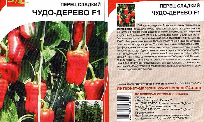 Hạt tiêu phát triển tốt và sinh trái ngay cả trong điều kiện ánh sáng yếu, nhưng vẫn nên dành những nơi có nắng tốt cho nó. Chiều cao của cây lên tới 170-200 cm, và điều này, tất nhiên, rất ấn tượng. Rất nhiều quả cỡ trung bình được hình thành trên bụi cây, nặng khoảng 50 gram trái cây. Peppers của Wonder Tree trông giống như lăng kính nhỏ, có làn da dày đặc và màu đỏ tươi.