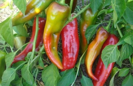 Người hâm mộ của ớt bất thường có thể đề nghị một loại Cornet năng suất và rất ngon. Cây bụi của anh ta rất cao, đạt chiều cao 150-160 cm, rất nhiều lá. Trái cây đang rủ xuống, lăng kính, có kích thước lớn, lên tới 190-230 gram. Bột giấy rất ngon ngọt, pericarp - lên đến 6 mm. Màu sắc ban đầu của ớt rất hấp dẫn - màu nâu sẫm, mang đến cho toàn bộ cây một vẻ đẹp kỳ diệu. Để nếm Cornet - ngọt, có mùi thơm dễ chịu.