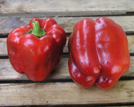 Ớt hình khối có màu đỏ tươi, thành dày, lên tới 7-8 mm. Vỏ có độ bóng cao, quả bị rủ xuống, bên trong có tới 3-4 tổ. Hương vị của ớt chín rất tốt.