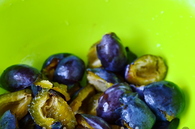 Mận nên chín, ngọt, ngon ngọt và dễ làm sạch. Chúng tôi loại bỏ các loại trái cây thối và sâu ngay lập tức, bởi vì đối với một loại thạch ngon, những thứ này sẽ không phù hợp với chúng tôi. Chúng tôi rửa mận.