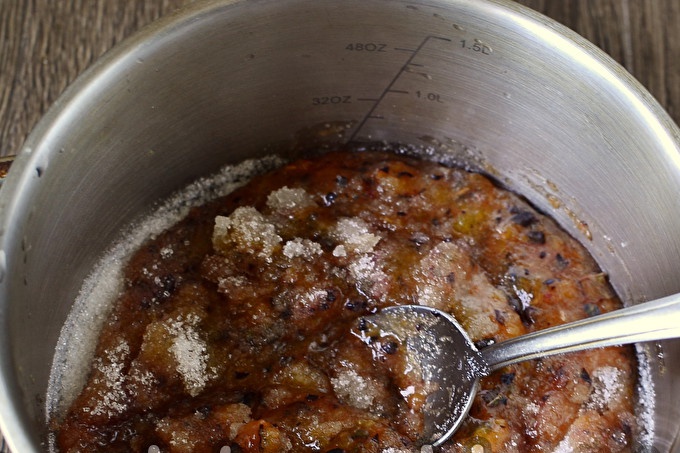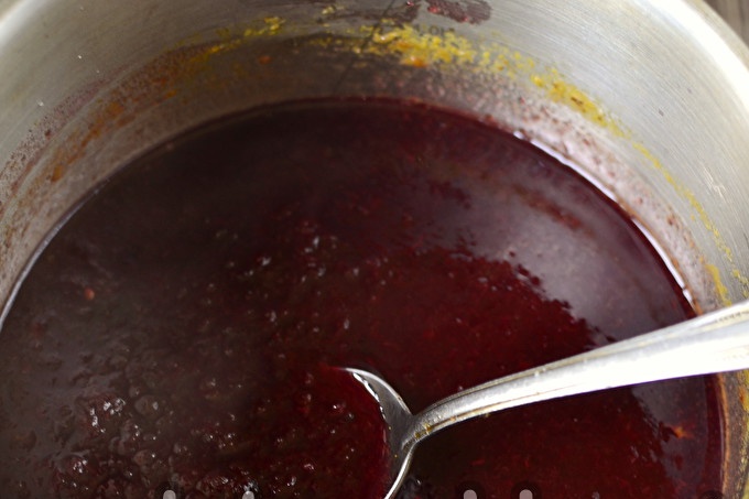 Đổ thạch nóng ngọt từ mận vào lọ khử trùng và ngay lập tức bị tắc.